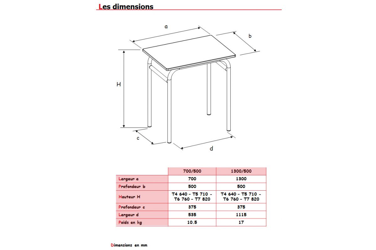 GalerieInfosMarque: SimireCatégorie: Tables d'école et pupitres Section: Collectivité Utilisations: Scolaire DescriptionHauteur fixe de la taille T4, T5, T6 et T7 norme européenne NF EN 1729. Table certifiée NF éducation.Table 4 pieds structure soudée.4 vérins de réglage. Table 1 place (70/50) et 2 places (130/50). Piétement en tube Ø 32 ép.: 1.5 mm. Option : casier tôle à visser Partage Partager sur FacebookTweet WidgetPinterestGoogle Plus Un ★ Ajouter aux favoris